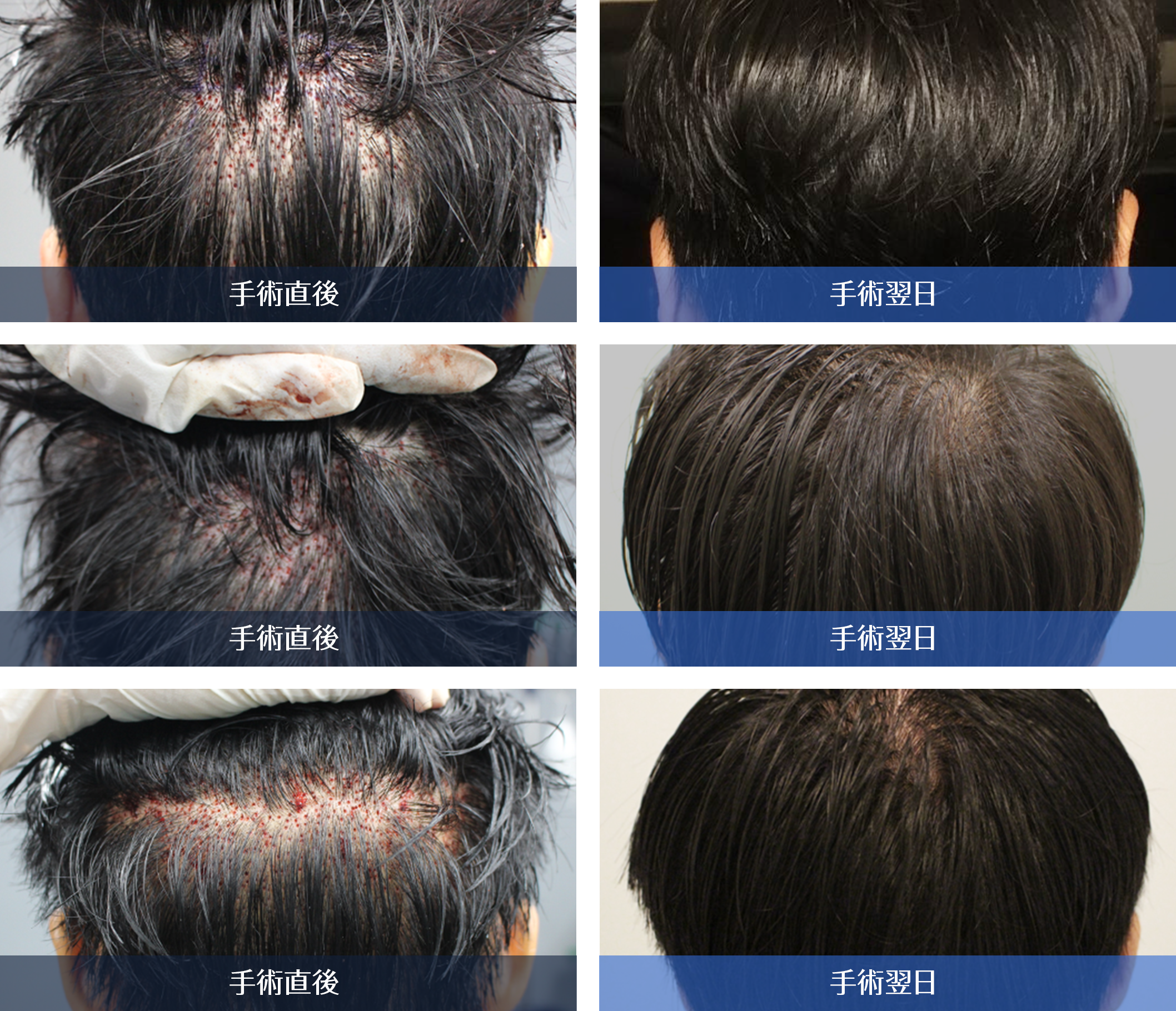 当院に来院された患者様のうち、剃りなしFUE法で植毛を受けた方の手術前後の写真です。すべての写真はいかなるデジタル加工もされていない生の写真であることを保証します。手術1年後の経過が気になる方は、下記のリンクからご覧ください。